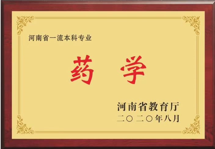 在2017年河南省教育厅专业评估中,药学专业排名为河南省第4名。近五年,物理化学、天然药物化学、医用化学获批“河南省第二批一流本科课程”;天然药物化学、医用化学获批“河南省高等学校精品在线开放课程”、物理化学、有机化学、医用化学获批河南省课程思政样板课,药学化学、医用化学为河南省专创融合示范课,无机化学为河南省本科高校研究性教学示范课,且有多门课程在学校课程评估中获A类等级。