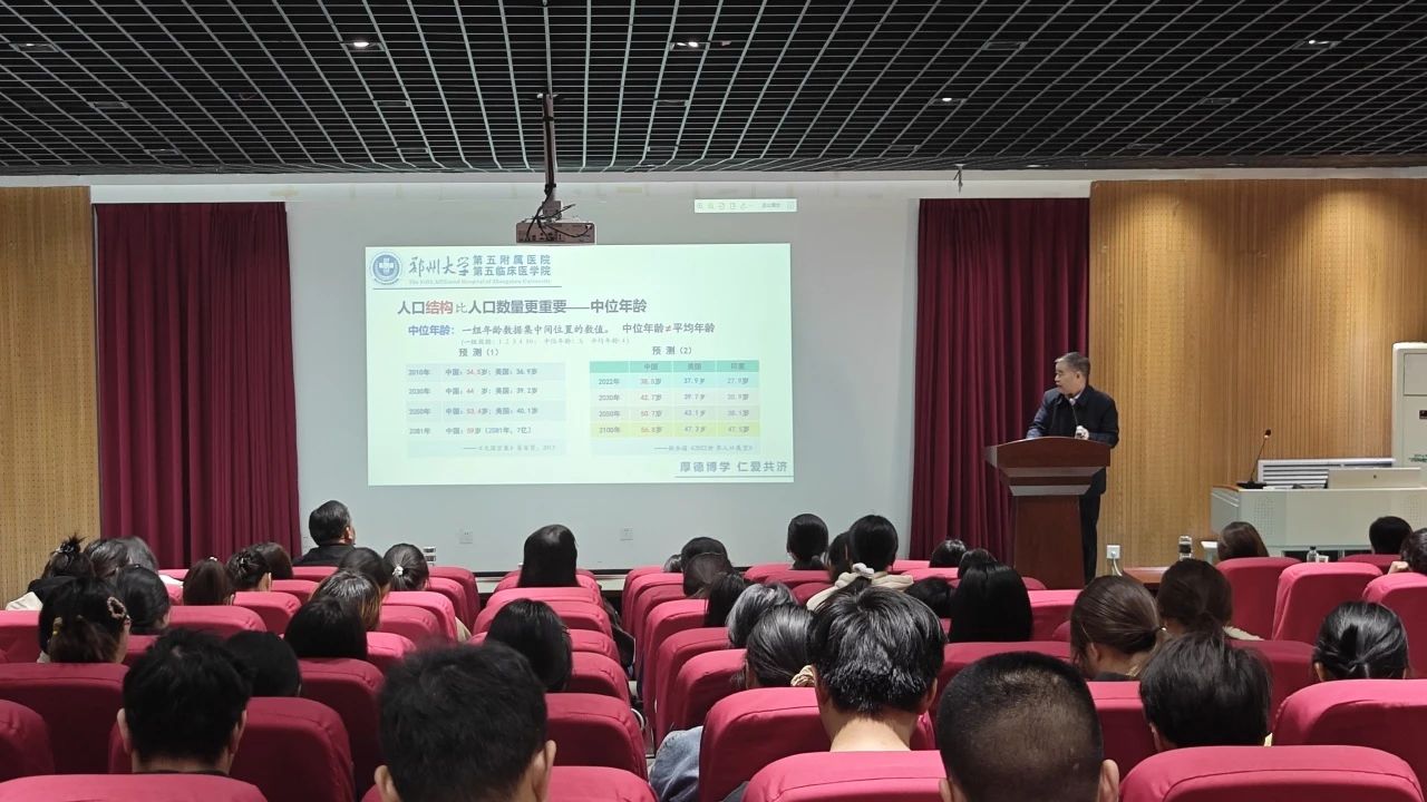 郑鹏远在首场讲座中,系统解析了人口老龄化形势与应对策略。他指出,医养康养结合是破解养老机构医疗保障难题的关键路径,并提出"全链式"智慧医养康养结合模式:通过打通医院-养老院-社区-居家服务链,构建"机构-社区-居家"三位一体体系,实现医养资源精准对接与智慧化管理。结合康复医疗领域实践,他倡导加强跨学科协作与数字化技术应用,建立以老年人为核心的服务体系,同时借鉴国际经验完善评估标准,推动养老体系改革。