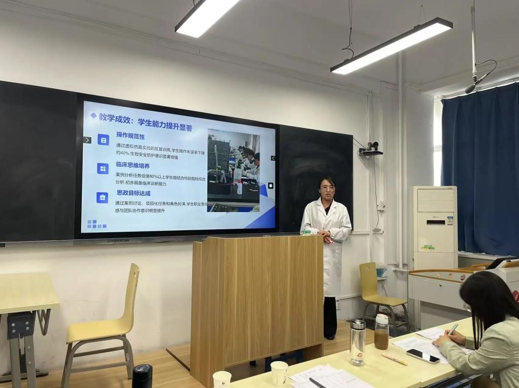 参赛教师在竞赛中完成了说课、教学设计展示与现场授课等内容。他们立足专业和课程,灵活运用多媒体技术、案例教学、情景模拟等多元化教学手段,将课程思政元素与医学专业知识深度融合,充分展现了扎实的教学功底和先进的教学理念。评委专家们从教学设计、课堂互动效果、教学语言表达及思政融入成效等多维度进行指导。评委们充分肯定了青年教师在教学创新和课堂感染力上的突破,同时针对教学节奏把控、高阶思维引导及临床实践衔接等方面提出了改进意见。