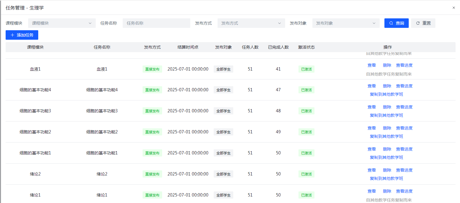 图2 学习中心任务学习中心及完成情况