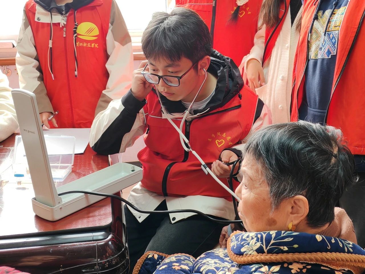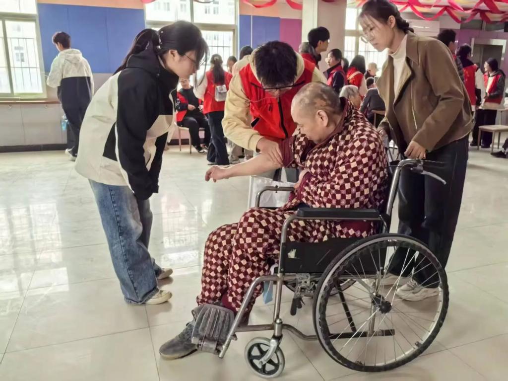 活动当天,同学们身着鲜艳的红马甲,满怀热情地来到活动现场,与老人们进行了亲切的问候和交流,现场洋溢着温馨和谐的氛围。接着,志愿者们为老人们献上才艺表演,无论是悠扬的歌声还是精彩的朗诵,都赢得了老人们的阵阵掌声。随后,青春同伴社成员为老人们带来了一场别开生面的健康科普讲座,他们详细讲解了高血压和糖尿病的相关知识,提醒老人们要时刻关注自己的身体状况,给出了健康的饮食建议。最后,志愿者们利用自身所学为老人们提供了血压测量服务,叮嘱老人们要合理膳食、注重健康。养老院的负责人对志愿者们的到来表示热烈的欢迎和衷心的感谢。他们表示,通过此次活动,老人们的精神状态和生活质量得到了显著改善,希望同学们能够继续投身社会实践,为老人们的生活提供力所能及的服务。