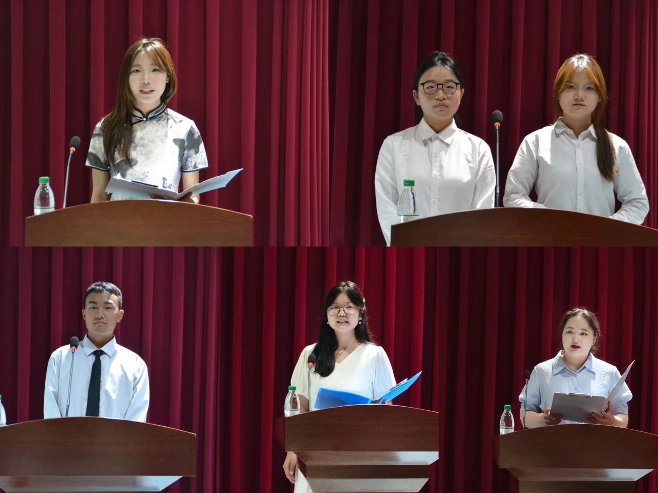 首先,郭佳琪回顾了历史上波澜壮阔的青春史诗,介绍了此次宣讲会的目的和意义。接着,九组宣讲人配合着优美的音乐和生动的视频画面紧扣时代脉搏,既回溯了百年前青年先辈救亡图存的热血历程,又聚焦当下“强国建设、民族复兴”的宏伟目标,以宣讲形式引导青年将个人成长融入国家发展大局,以奋斗姿态诠释个人的坚定信仰。在宣讲过程中,成员们配合着优美的音乐和生动的视频画面,为领台下观众掀起了一场关于理想信念、责任担当与创新实践的精神共鸣。