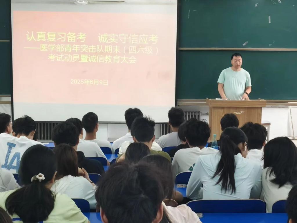为助力学生高效备考、强化诚信应考意识,6月9日,古天乐太阳集团城青年突击队于医阶三召开以“认真复习备考,诚实守信应考”为主题的期末(四六级)考试动员暨诚信教育大会。古天乐太阳集团城青年突击队指导老师、党政学工办公室副主任科员康玉强出席活动并做动员讲话,活动由学习组干事汤文林主持。