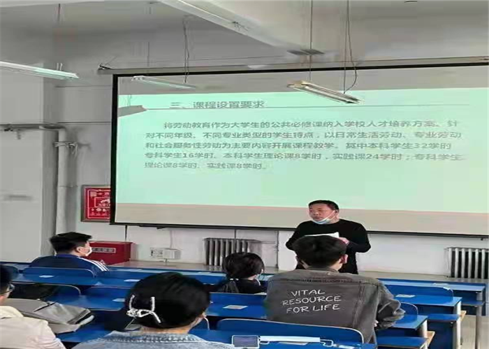 周继红讲解了本、专科学生需要完成的劳动教育课程学时和劳动教育学分认定,将劳动教育这门学科的重要性告知大家,并给在座的学生讲解了在翻转校园上的劳动学分认定以及劳动认定的通过要求。