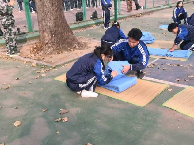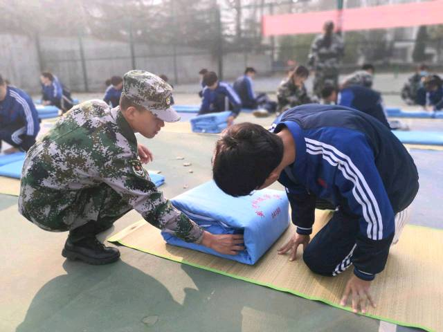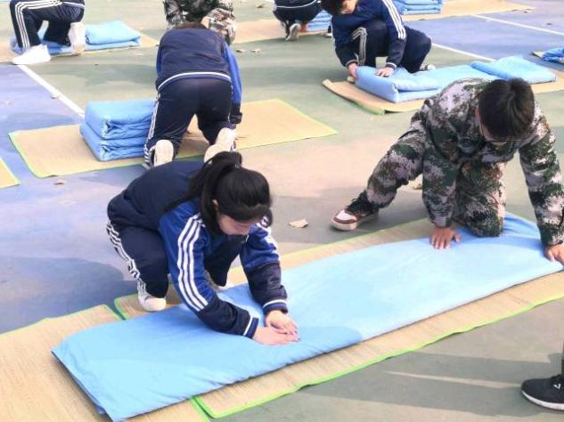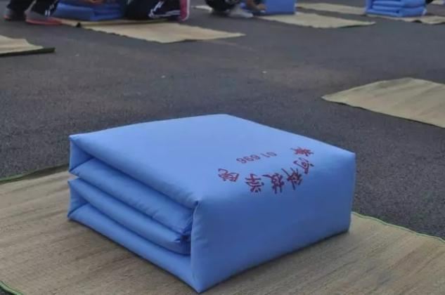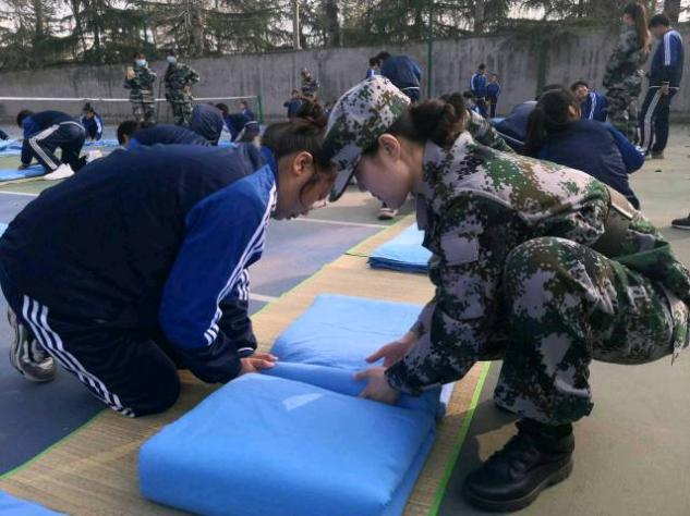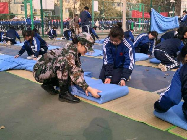 学习过程中,教官们按照军训标准,对被褥叠放提出了严格要求并指出了在内务细节整理方面的注意事项。