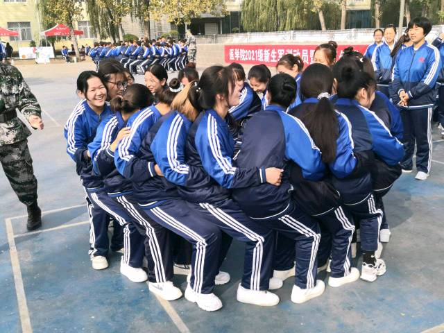 医技系新生赵天萌说:“大家围成一个大圈,喊着口号,我们互相加油打气,为的就是集体的胜利。”