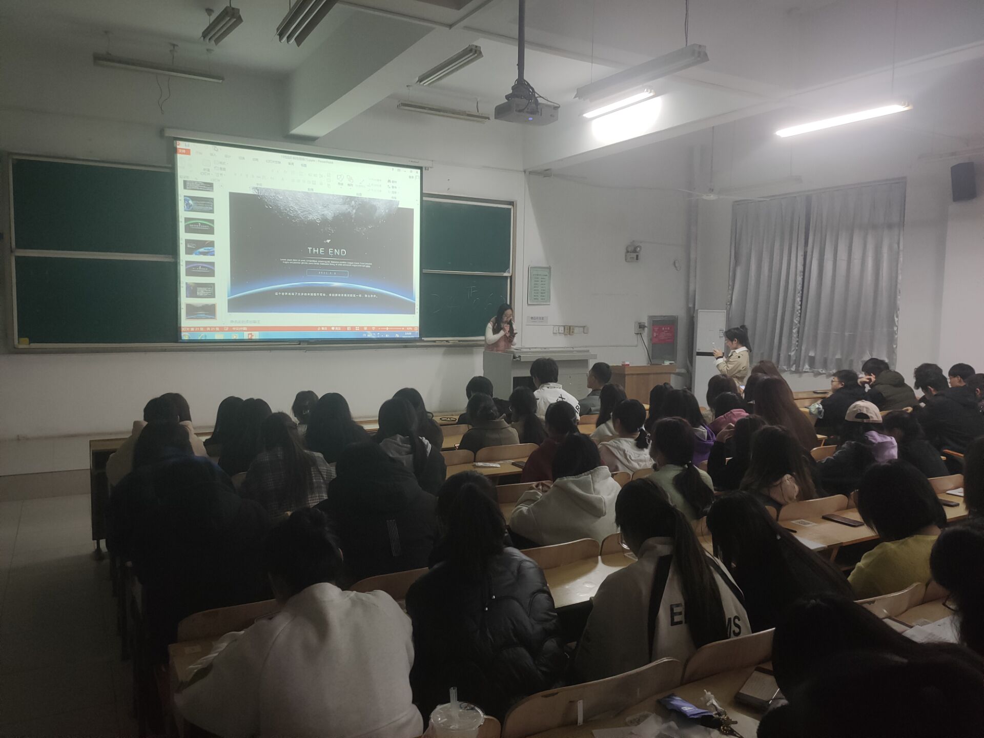 推进会伊始,韩秋霞就"律化钠"班级文化背景、特色班级创建方案及取得的成果、特色班级创建不足之处、下一步如何改进四个方面与全体同学进行分享与交流。接着,她通过图片集中向大家展示特色班级创建以来同学们参与的各种社会实践活动及取得的荣誉证书、各类奖项奖章等,并且通过数据向大家说明目前班级四六级通过率,进一步增强同学们的自信心,激起同学们的斗志。