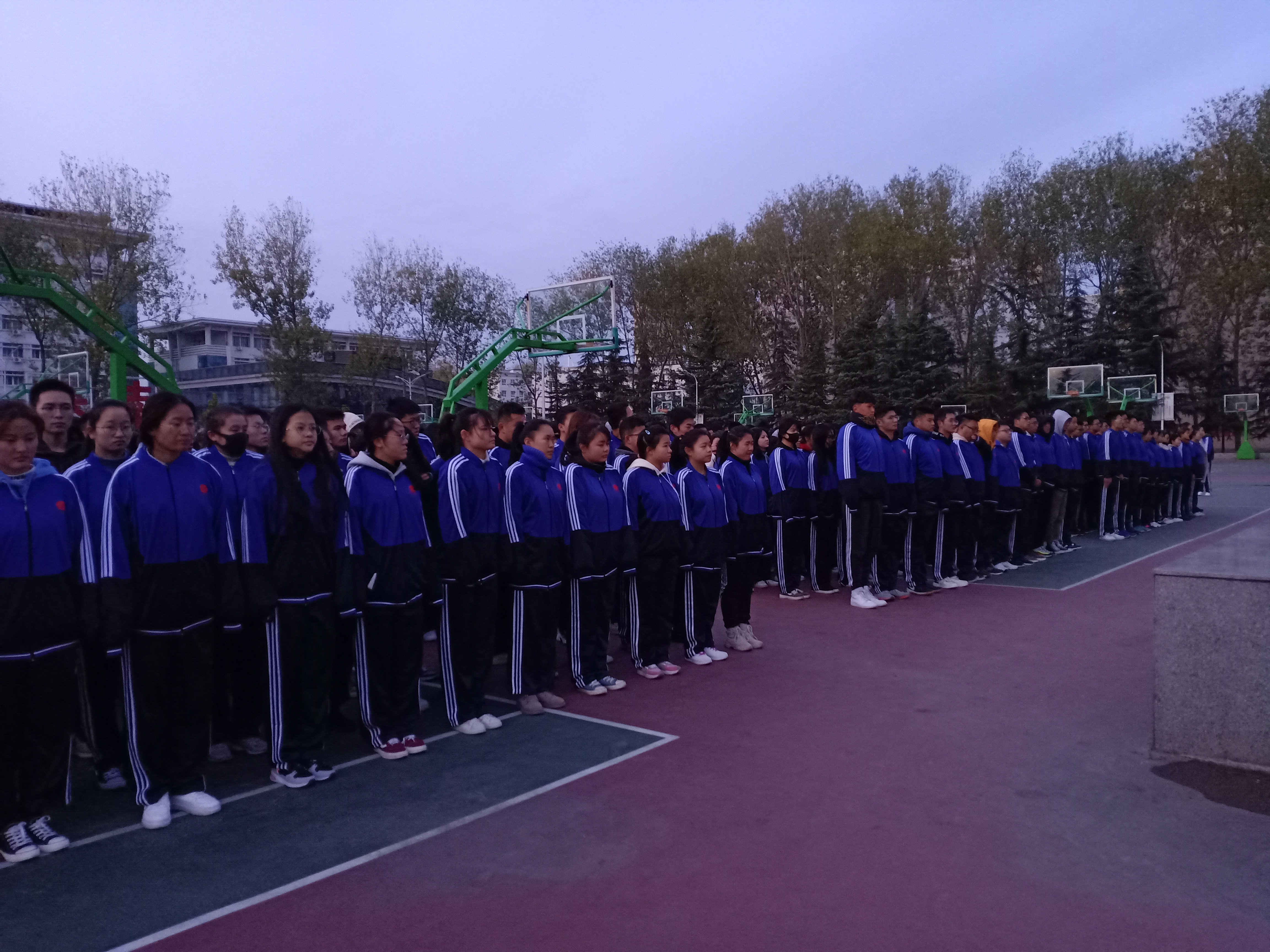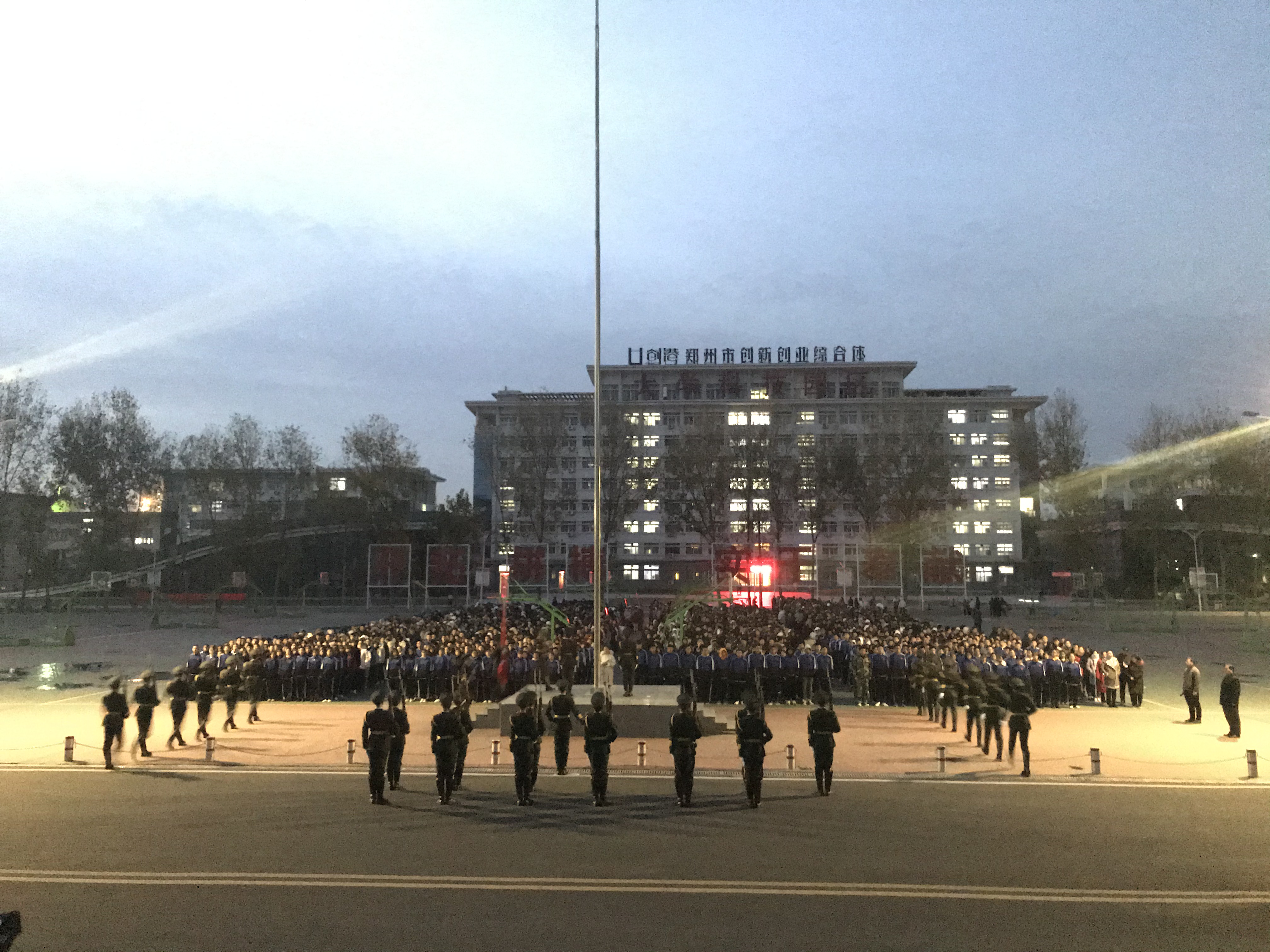 11月25日早,医学院于信息大楼前举行升国旗仪式。寒意渐渐,天色未亮,医学院全体师生却早已于信息大楼前集合完毕。本次升旗仪式主持人为康玉强。