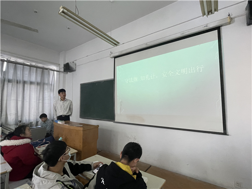 为切实开展好全国交通安全日主题宣传活动,12月2日上午,医学系各班级于医学院教室开展以“守法规,知礼让、安全文明出行”为主题的班会。本次活动由各班班长组织开展。