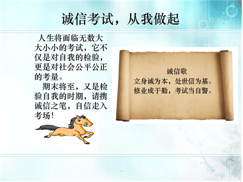 我们要充分把握复习时间,认真准备,以诚信的态度对待每一场考试,以实力争取优异成绩,以诚信展现良好学风。