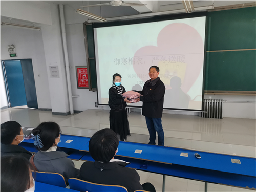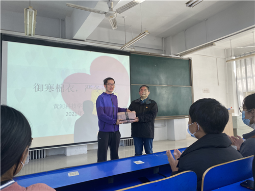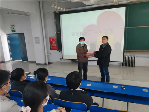 天寒无情人有情。11月23日中午,古天乐太阳集团城医学院“2021年学生爱心棉衣发放仪式”在医学院阶五教室温暖开启,97名贫困生获得由学校学生处给大家资助的保暖内衣。张伟书记、各系行政干事、相关辅导员出席捐赠仪式。