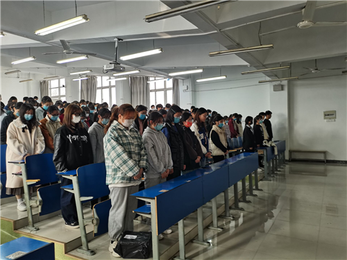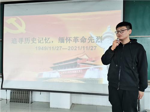 会议伊始,讲解人郝伟同学以“铭记过往,缅怀先烈”为主题,介绍了有关1945年11月27日相关历史背景,并带领全体参会成员为烈士默哀。