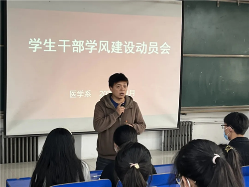 为端正学生干部学习态度,共建医学系良好学风。11月17日中午,2021级医学系学生会在主任助理马社敏的主持下于医阶四召开学生会干部学风建设动员大会。