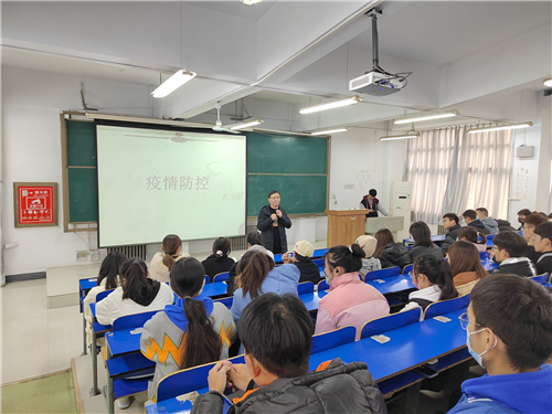 接着,田恒运讲述了期末考试的相关事宜,希望同学们能精准定位自己,做好期末复习工作,重点强调了诚信应考的重要性,告诫同学们不要游走在政策的边缘,要树立强烈的集体意识。然后,就疫情反复的情况,田恒运讲解了同学们该如何做好疫情防控,他希望疫情常态化下同学们能做好心理准备,按时完成每日健康打卡,强调了同学们临近期末非必要不外出。