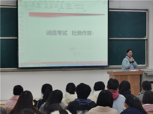辅导员刘晓玲从树立健康人格角度阐述诚信对于同学们今后发展的重要性,鼓励同学们努力复习,尽全力考出自己的水平,去体验获得知识的快乐并带领同学们宣誓、签字《考试诚信承诺书》,表达了同学们诚信考试的决心和信心。