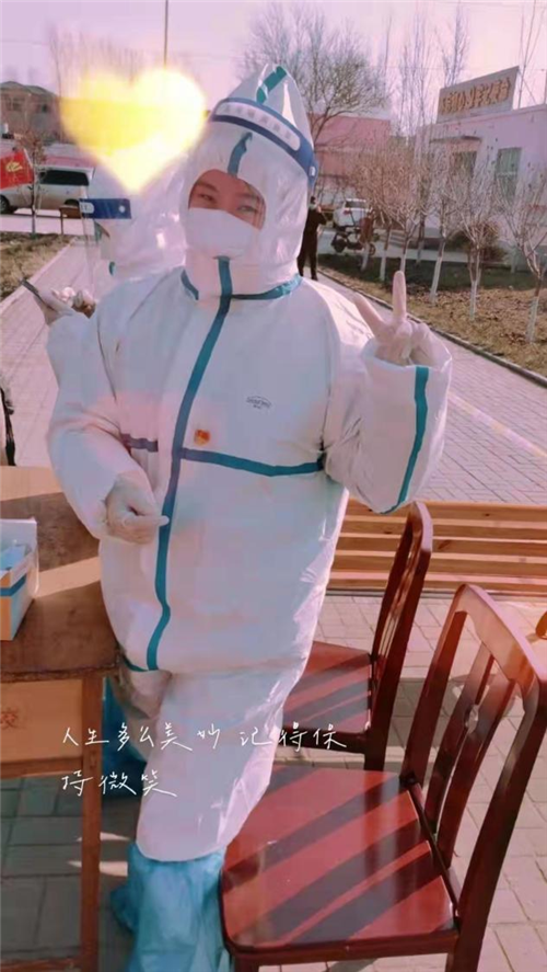 19级药学系的程沛璇同学作为一名医学生,积极投身于防疫工作之中。突如其来的疫情打破了安阳这个小城市的宁静,这不得不让我们的基层人员和医护人员做好随时走向战疫一线的准备,程沛璇同学每天早上天不亮就到村委会做准备工作,手机铃声开到最大,随时待命,在别人还在睡梦中的时候,她就已经在寒风中站了几个小时了。她的主要工作是按照镇政府的防疫要求严格登记外来人员的身份信息,对他们进行体温监测、双码核验。此外,她还要穿着笨重的防护服,去给行动不便的老人上门做核酸。哪有什么岁月静好,只不过是有人替我们负重前行。她的付出生动形象的诠释了什么是中国青年该有的模样。