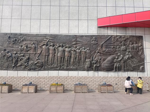 从纪念馆外观可以看到,它的外形似一艘扬帆远航的巨轮,整个建筑分为上下两层,展览馆上方的红旗造型象征着雷锋精神和“编外雷锋团”精神,是邓州、南阳乃至河南省的一面旗帜,高高举起,永远飘扬。展馆外墙制作大型浮雕墙,展示了邓州市开展全民学雷锋活动的场景。