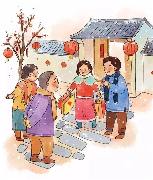 古时“拜年”一词原有的含义是为长者拜贺新年。拜年一般从家里开始。初一早晨,晚辈起床后,要先向长辈拜年,祝福长辈健康长寿,万事如意。长辈受拜以后,要将事先准备好的“压岁钱”分给晚辈。在给家中长辈拜完年以后,人们外出相遇时也要笑容满面地恭贺新年,互道“恭喜发财”、“四季如意”、“新年快乐”等吉祥的话语,左右邻居或亲朋好友亦相互登门拜年或相邀饮酒娱乐。
