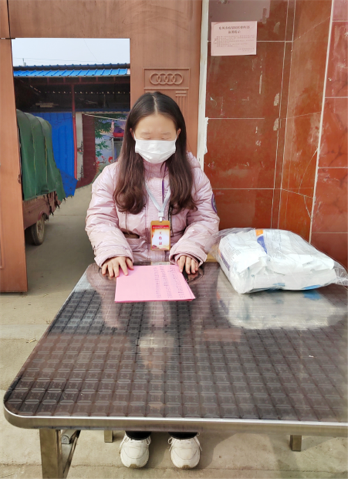 疫情当前,在假期返乡后于敏雪积极响应当地政府的号召,加入当地志愿者队伍进行工作。主要负责登记核酸检测信息,并将信息录入电脑,对信息进行整理和筛选,为当地政府更好地了解当地核酸检测情况提供信息支撑。在主要工作完成之余会主动配合发放防疫物资和积极向群众普及防疫知识。在这次实践活动中,于敏雪切实体会到:身为当代青年,我们需要深入践行社会主义核心价值观,在国家面临困难之时,需要积极贡献自身的力量,无私奉献,尽绵薄之力。