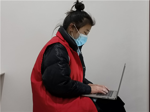 王欣欣的志愿服务主要有两个工作,一个工作是在进行全员核酸检测的时候协助工作人员做好防范宣传,帮助老人讲解信息登记方法并完成登记,引导老人前往绿色通道进行核酸检测,并且负责维护排队秩序,帮助核酸工作快速有效进行。另一个工作就是到村口值班,负责当日在卡点登记进出人员信息、查验人员健康码和行程码。在值班的时候也遇见一些老人没有智能手机,她们会用电脑登记他们的基本信息,留下记录。