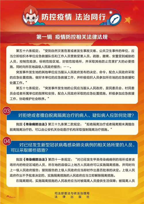 2022年是“十四五”规划、“八·五” 法治宣传教育规划深入推进全面落实之年,现阶段因新冠肺炎疫情反弹形势严峻,为助力维护社会稳定和提高法治意识。以下是疫情防控相关法律法规知识,希望大家认真学习,并遵照执行。