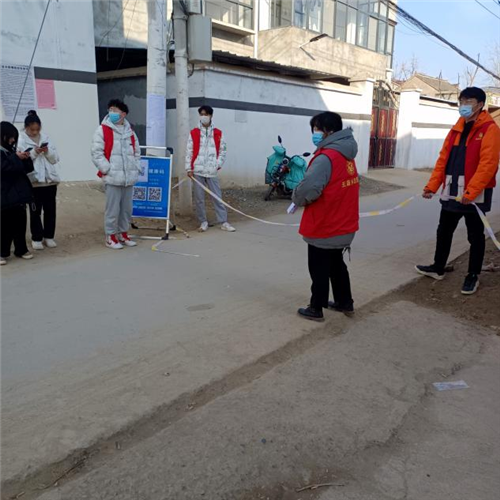 21级临床医学本科班班长张雅琴,在河南省周口市商水县大武乡参加防疫志愿者服务。