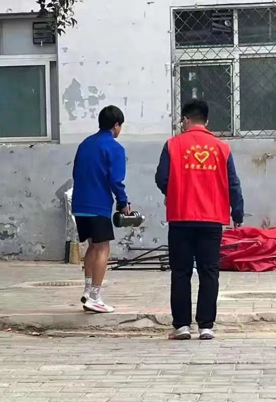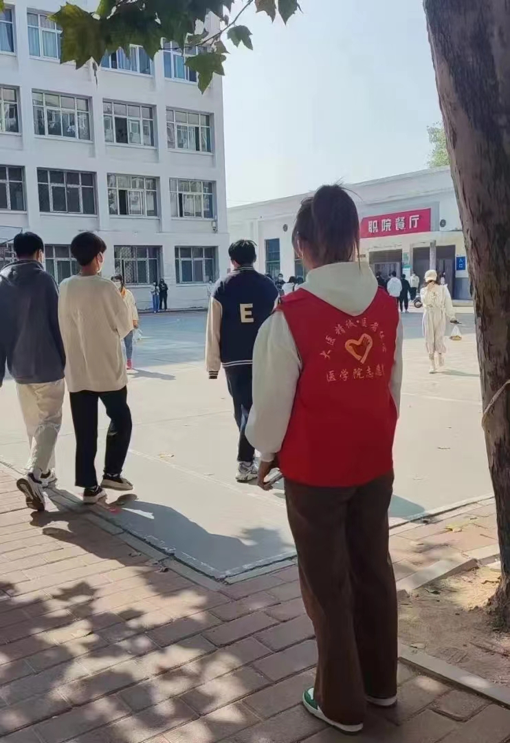 志愿者们身穿红色医学院志愿者马甲,他们的身影在校园内、宿舍楼前、核酸检测现场、宿舍楼层中随处可见。巡逻中遇到未戴口罩、口罩佩戴不规范、人员聚集等行为,及时给予提醒;在核酸检测现场,志愿者们协助工作人员测量体温、维持秩序、提醒排队间距等;在宿舍楼里,志愿者们不断提醒大家减少聚集,无事不串寝、不串楼层,坚持每日开窗通风。