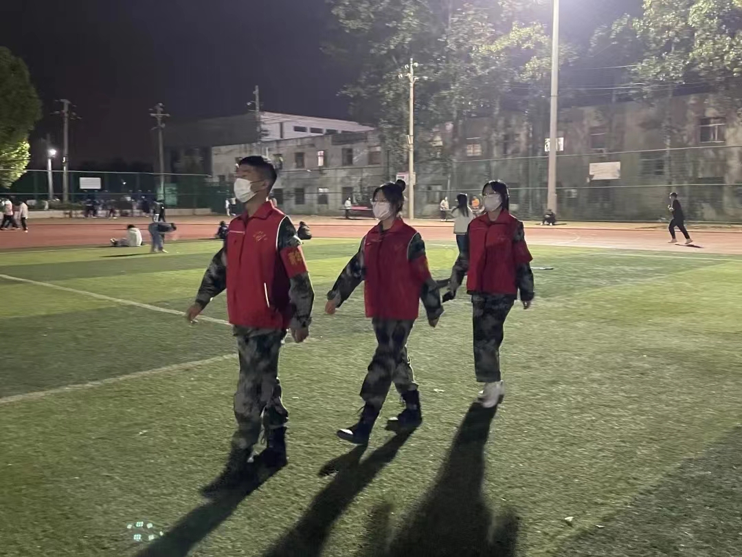 为加强田径场的疫情防控和安全管理、文明督查等工作,2022年11月4日,由罗校长带队,进行巡逻督察工作。本次督察队伍由罗校长、所有值班老师及医学院康玉强老师和医学院青年突击队队员共同组成。