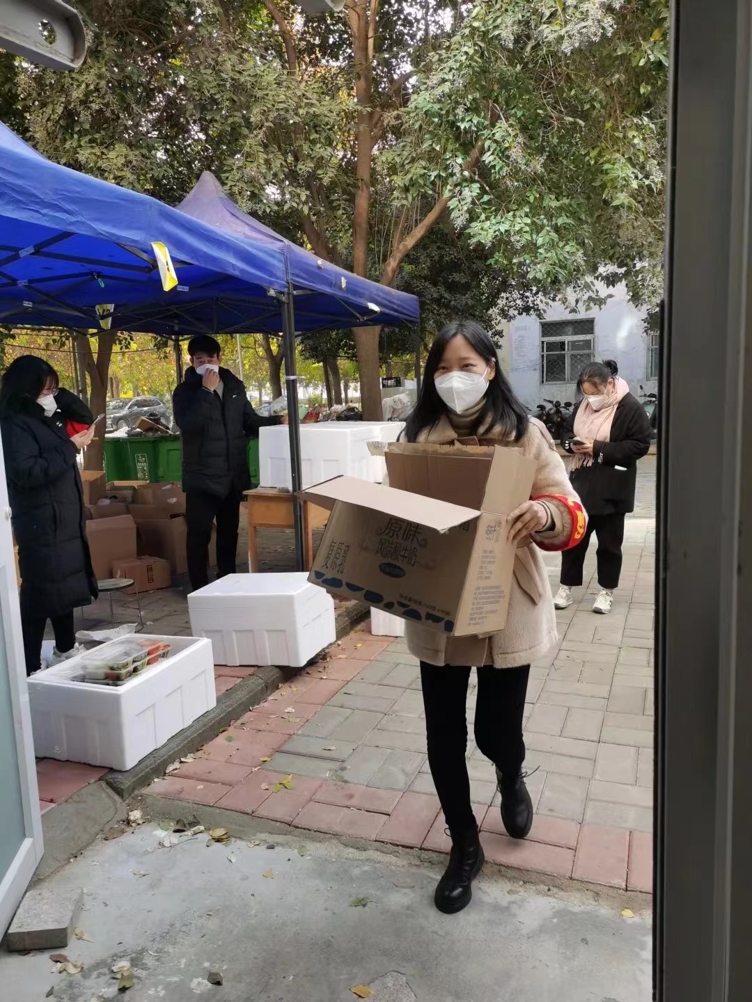 孙小涵,护理系辅导员,在新2号学生宿舍楼值班。她密切关注学生健康,每日及时协调安排、统计、汇总、上报学生核酸检测情况,为学生发放一日三餐和生活用品。