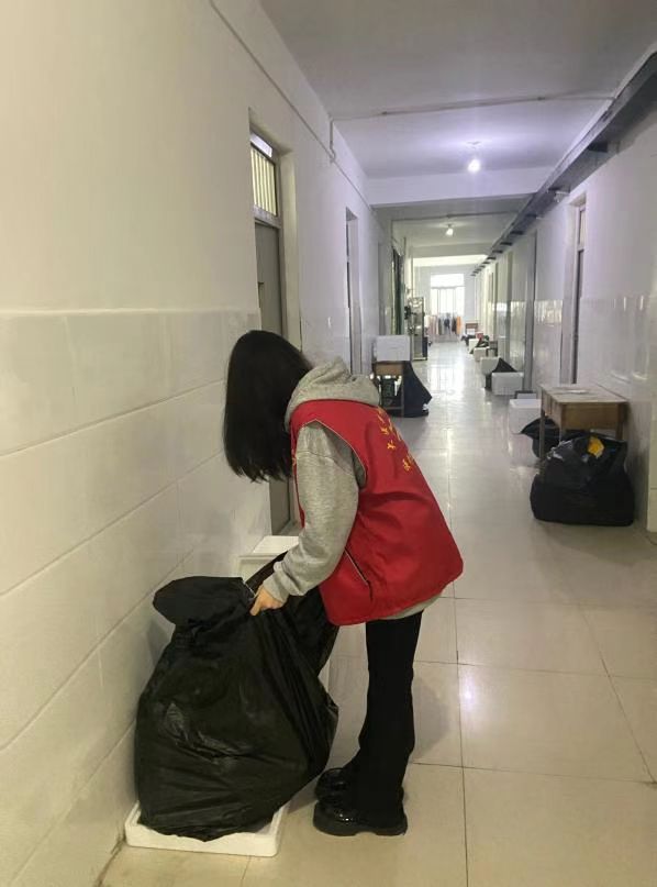 李欣雨,2022级医学检验技术。李欣雨同学得知需要志愿者后,十分积极的参加进去。她负责核对物品数目,一个一个的查分发物资的数量,必须要保证数目的正确才能让每一位同学都拿到物资,避免后面的错误,使防疫工作有序进行。黄科院的每个寝室楼里都有很多志愿者在默默奉献,她相信坚持一定会迎来胜利!