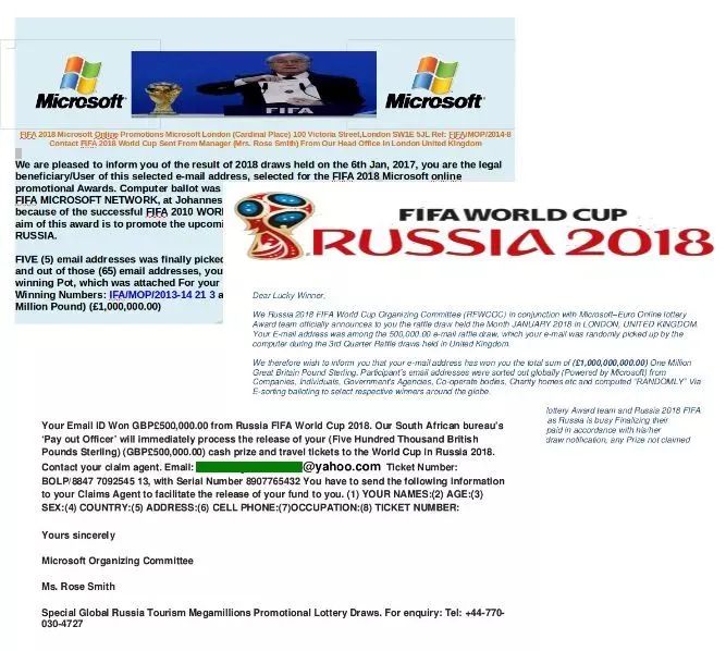 由于世界杯合作机构经常为客户安排赠品,部分犯罪分子就利用这一点制作了官方合作伙伴的“克隆”网站来窃取用户的银行和其他帐户信息。