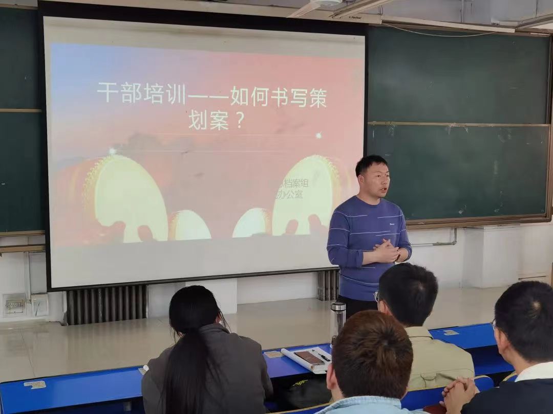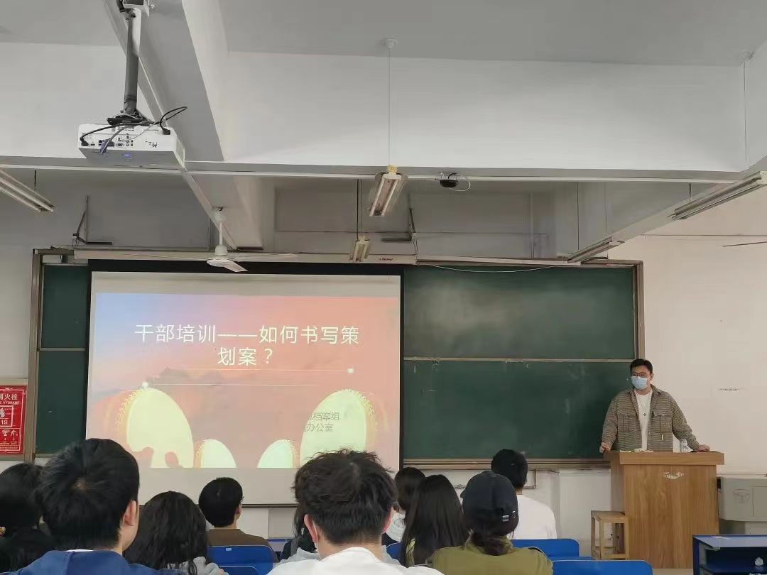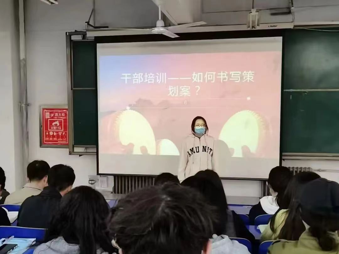 会议伊始,康玉强对干部前期工作进行总结点评,王照先对本次干部培训内容及目的进行简要说明。接下来办公室刘子豪通过展示以往青年突击队员春训的策划案,详细地讲述了应如何写好一份策划案,介绍了书写策划案的流程、格式及注意事项。
