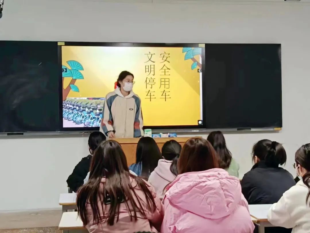 通过宣讲积极倡导与教育学生遵守公共秩序,保障交通安全,切实预防和减少校园道路交通事故的发生。学生会通过线下组织各部门部员开展分享个人对停车行为的看法与建议。首先是学生会成员千吉利针对不文明停车而造成的后果进行分析,然后提出几点建议来尽量减少不文明停车现象,接着另一位学生会成员许贤针对安全停车进行建议。