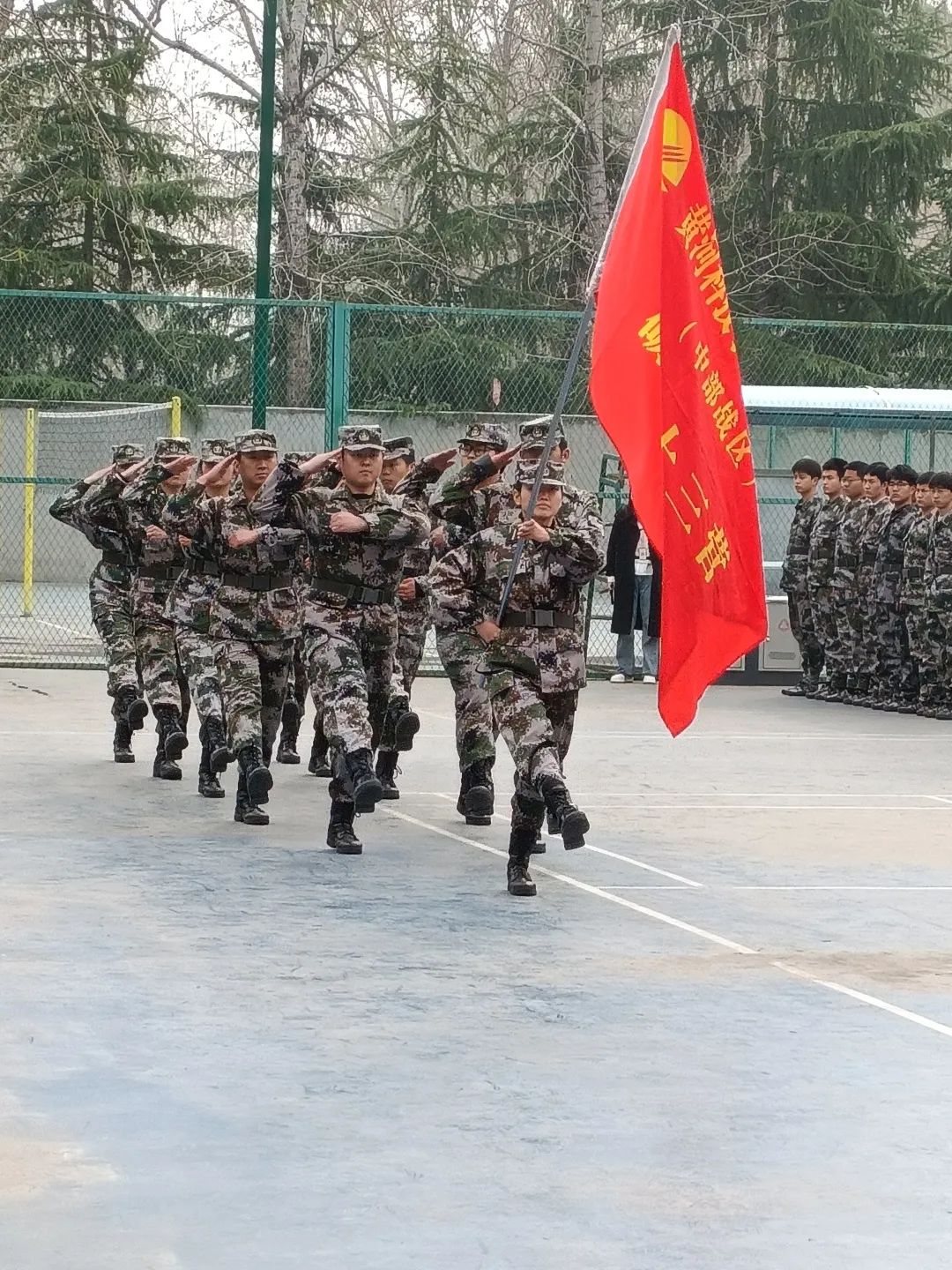 仪式第一项,列队整顿,奏唱国歌。接着,由康玉强进行讲话动员,他指出,青年突击队是一个考核的载体,期望新队员在此次活动中提高对青年突击队的认知,增强对青年突击队的归属感,有所收获,有所成长。传承医学院青年突击队优良作风,主动积极表现,展现黄科大学子的精神面貌。然后,王照先进行发言,他告诉队员们,穿上迷彩服就意味着要承担起身上的责任,积极响应青年突击队的号召,服从组织管理,履行队员义务,团结一心不抛弃,不放弃。最后,由青年突击队教官以及四系代表进行特色方阵展示,随着红歌声音的截然而止,此次开营仪式圆满结束,22级预备队员迎来了为期三周的春训时光。