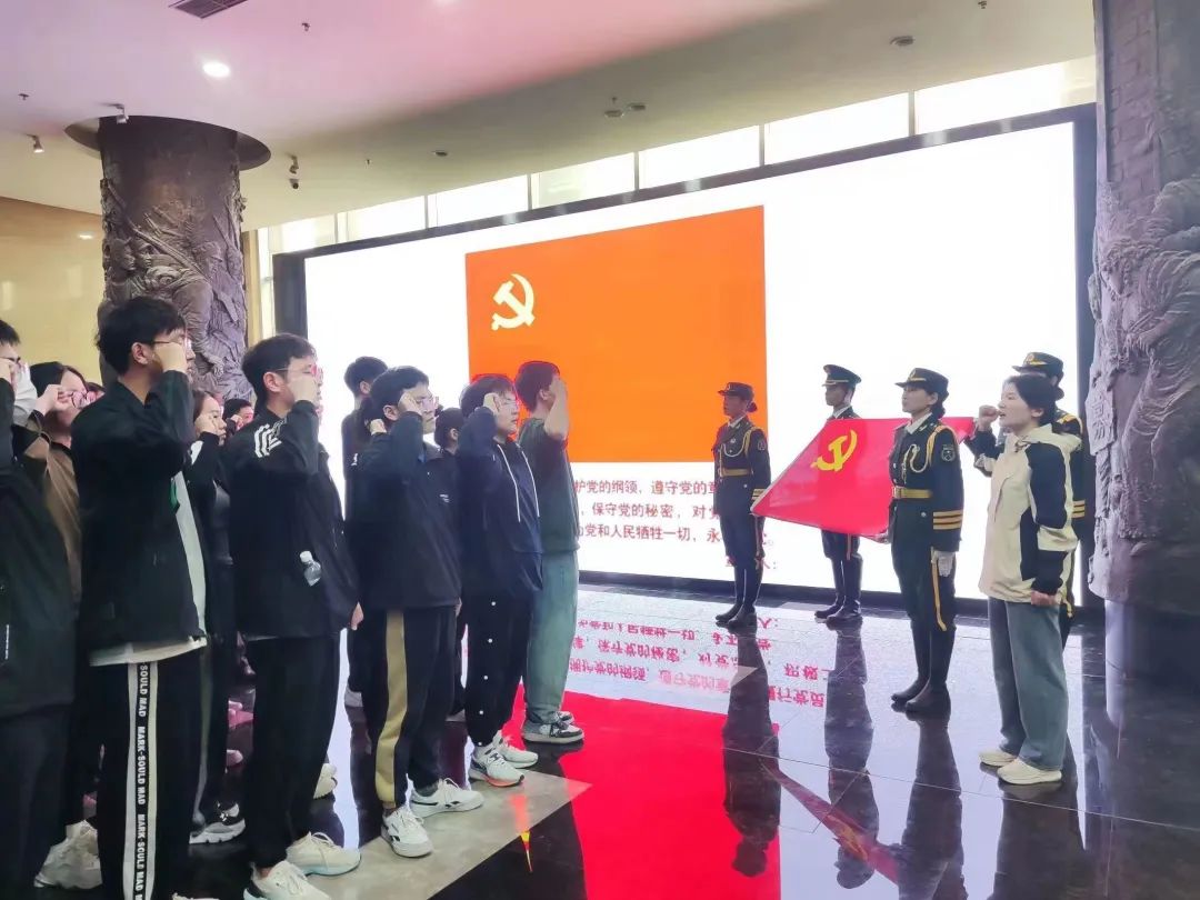 仪式结束后,全体人员前往中原英烈纪念馆内瞻仰参观。在一楼展厅,全体党员面对党旗,重温入党誓词。随后,大家一起观看了党的光辉历程纪录片,而后又依次参观了各个展厅,通过一件件珍贵的革命文物、一幅幅激烈的战争场景、一张张感人的历史图片,展现了在不同历史时期,为探求救国救民、民族富强正确的道路,河南人民在党的领导下前赴后继、英勇战斗的历史,大家时而驻足凝望、静思感悟,时而讨论交流,内心被一段段历史所感染、震撼。
