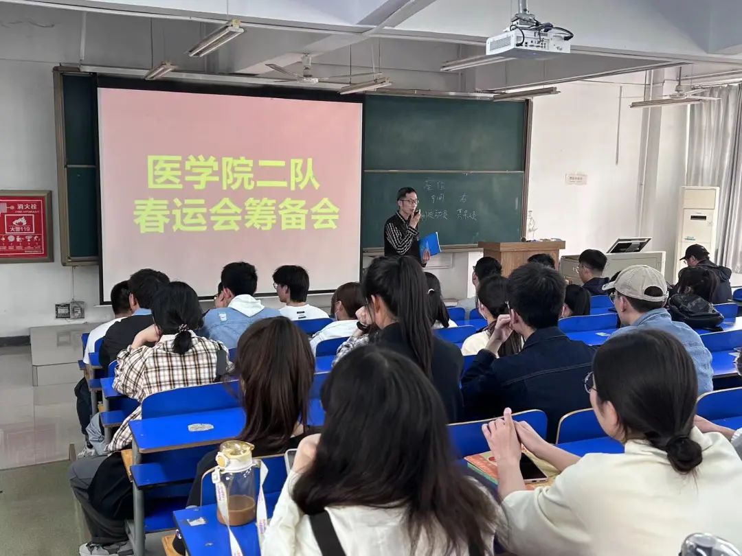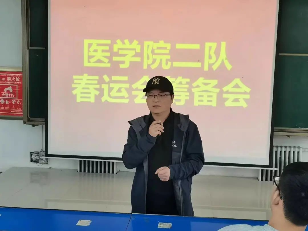为了让学生干部更加了解春季运动会相关工作部署,4月11日,医学院二队在医阶五开展春运常务例会,医技系、药学系学生干部及运动会参赛成员参与此次会议,由医技系副主任田恒运、药学系副主任李乐老师主持。