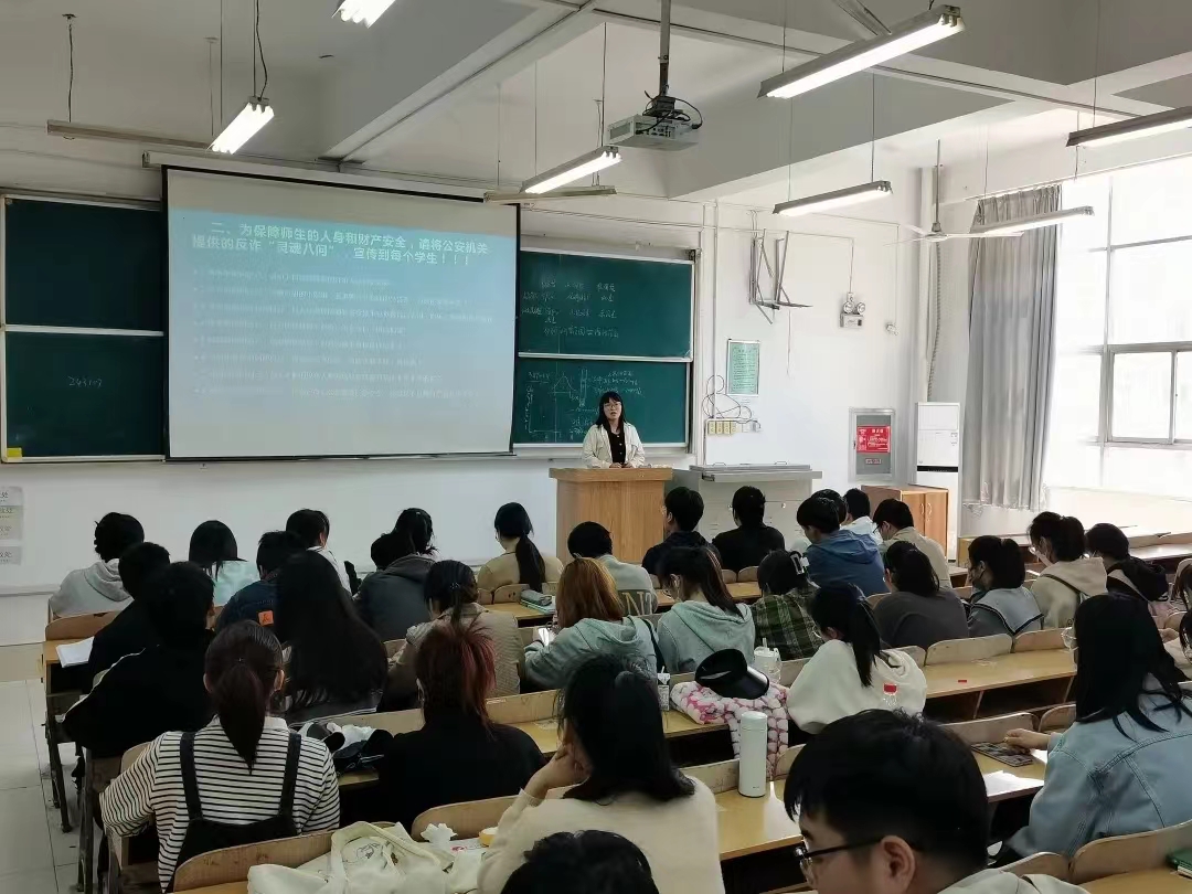 刘佳以近期在同学们身边发生的真实事例来加强大家对保护国家安全和自身安全防诈骗的意识,开展了以《反间谍安全防范工作规定》、《公民举报危害国家安全行为奖励办法》为重点的国家安全教育,给同学们介绍了国家安全的内容,讲解了关于网络电信诈骗的主要手段及惯用伎俩。