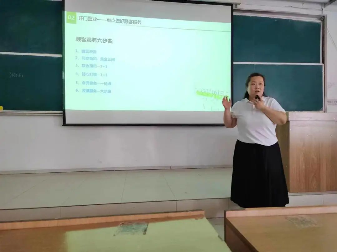 首先,陈婧播放了优秀毕业生视频,为同学们分享了药店管理工作经验,重点讲解了营业前的准备、开门工作、用餐安排以及交接班等基本作业流程,并对同学们提出的问题进行解答。同学们积极互动,踊跃发言,纷纷表达了自己的观点。最后,陈婧再次强调身为药店管理人员,应加强业务学习,提升工作效率,不断改进服务质量,为百姓提供更便捷有效的医疗服务。