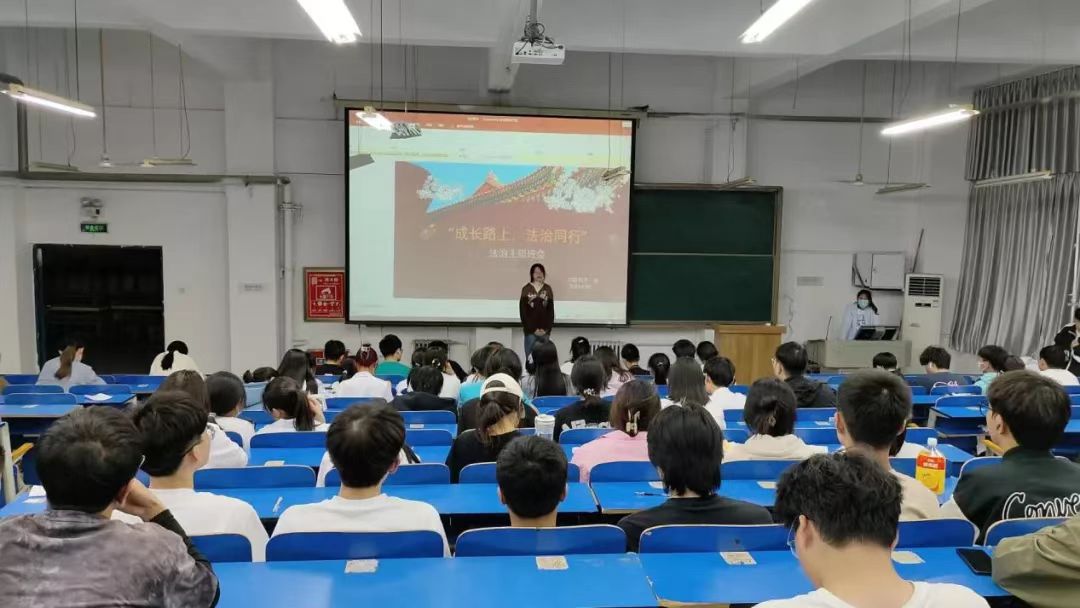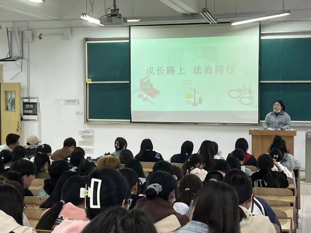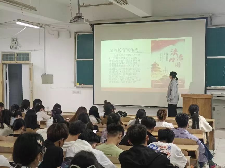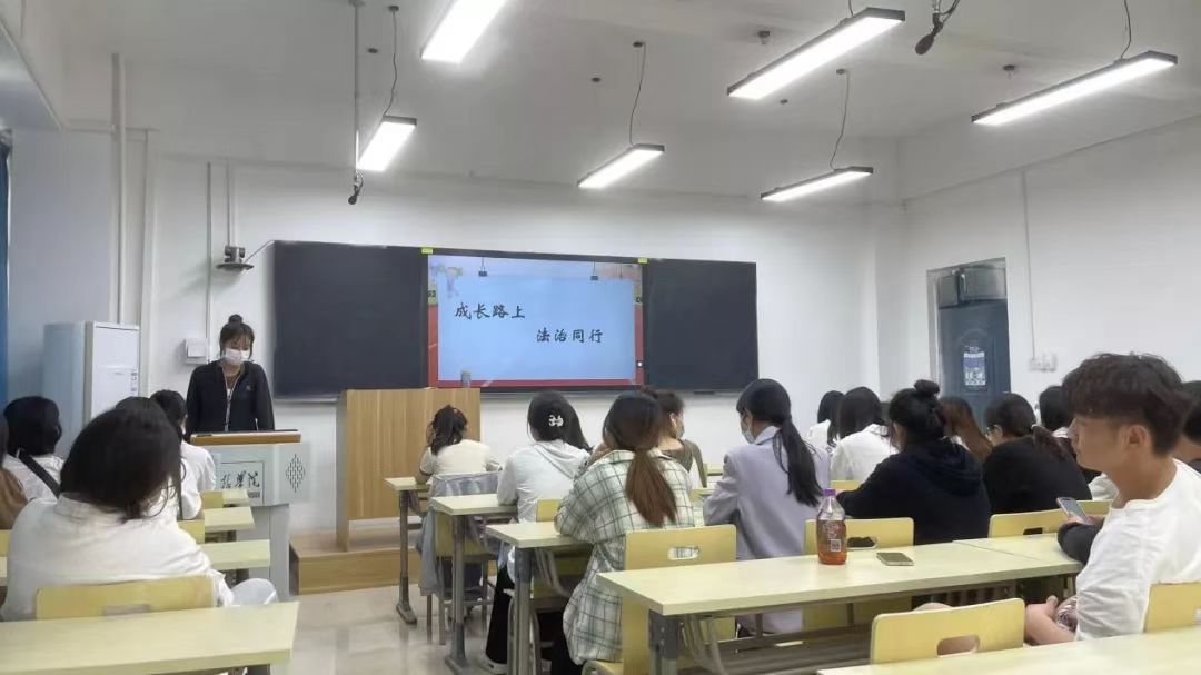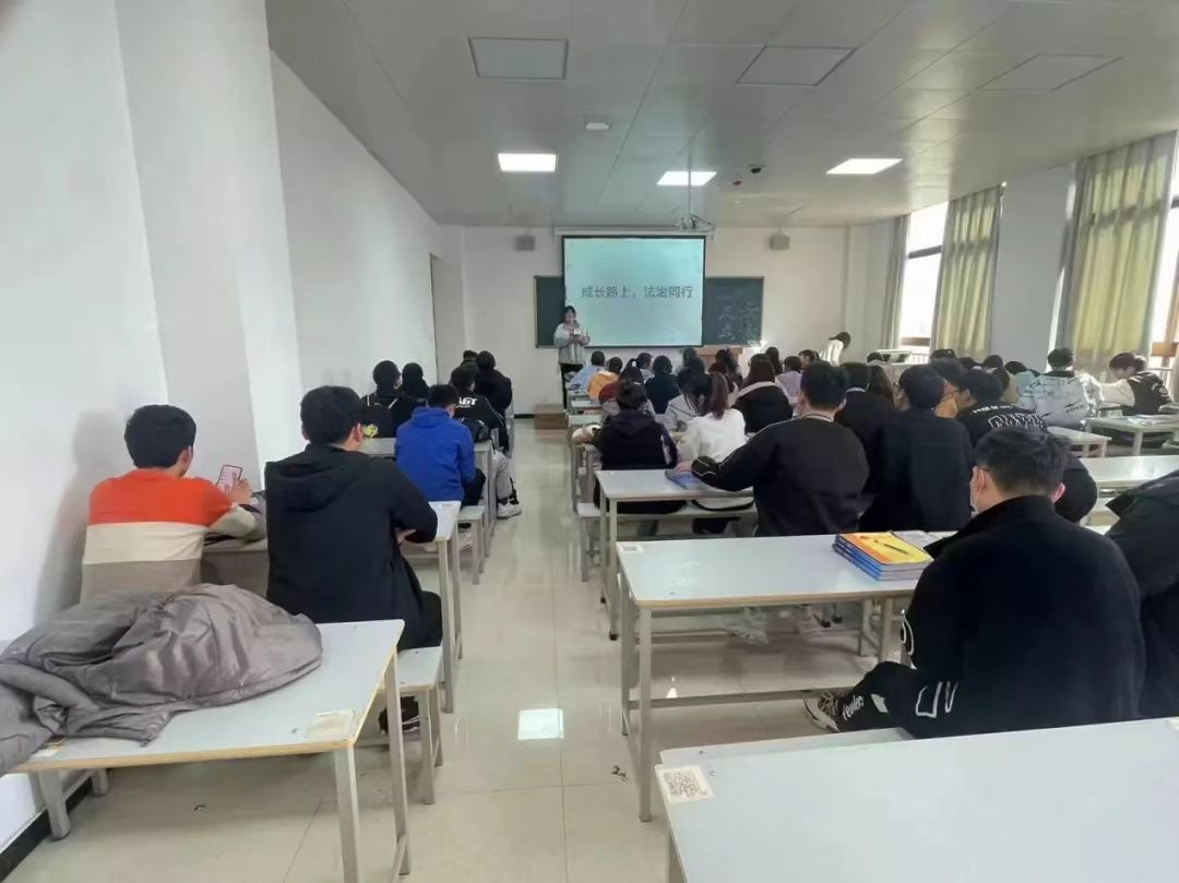 会上,辅导员高秀通过实际案例进行讲解,如替别人办卡,转发未经证实的消息等,引导同学们认识“法”,“法”对个人及社会都起到了规范的作用。青年是国家发展和民族未来的希望,是社会主义建设者和接班人,敬畏法律、尊重生命,大学生们的成长路上不能缺少法治,青年一代应该从自身开始,做知法、懂法、守法、用法的好公民。