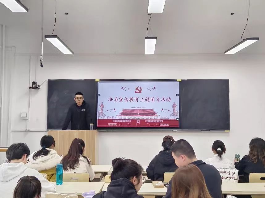 主持人陈贺妍首先向同学们介绍了一些普法知识,同时强调指出,我们青年大学生要深入学习贯彻《全国教育系统开展法治宣传教育的第八个五年规划》,认真学习《教育法》《高等教育法》《家庭教育促进法》《民办教育促进法》等法律法规,做一个知法、懂法、守法的新时代青年人。并号召同学们做好普法知识的理论知识储备累积,带动身边的人一起推动法治教育的宣传及开展工作,让法治教育和同学们的学习、工作、生活紧密结合起来,在生活中努力提升自己的法治思想精神。