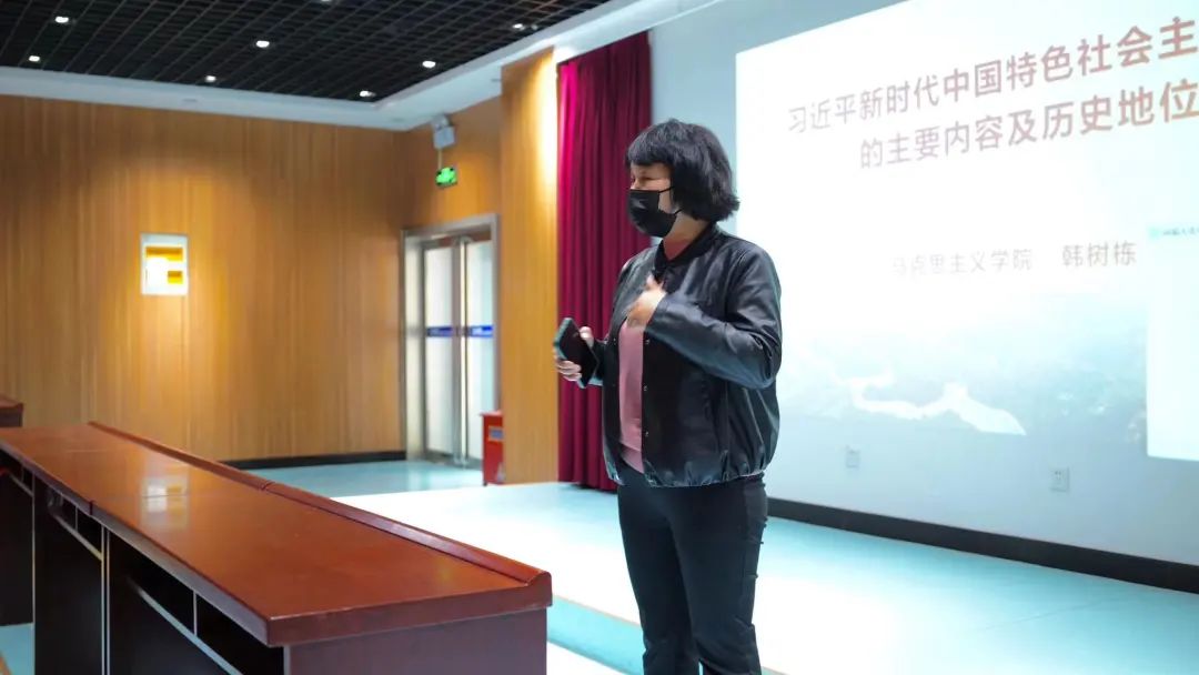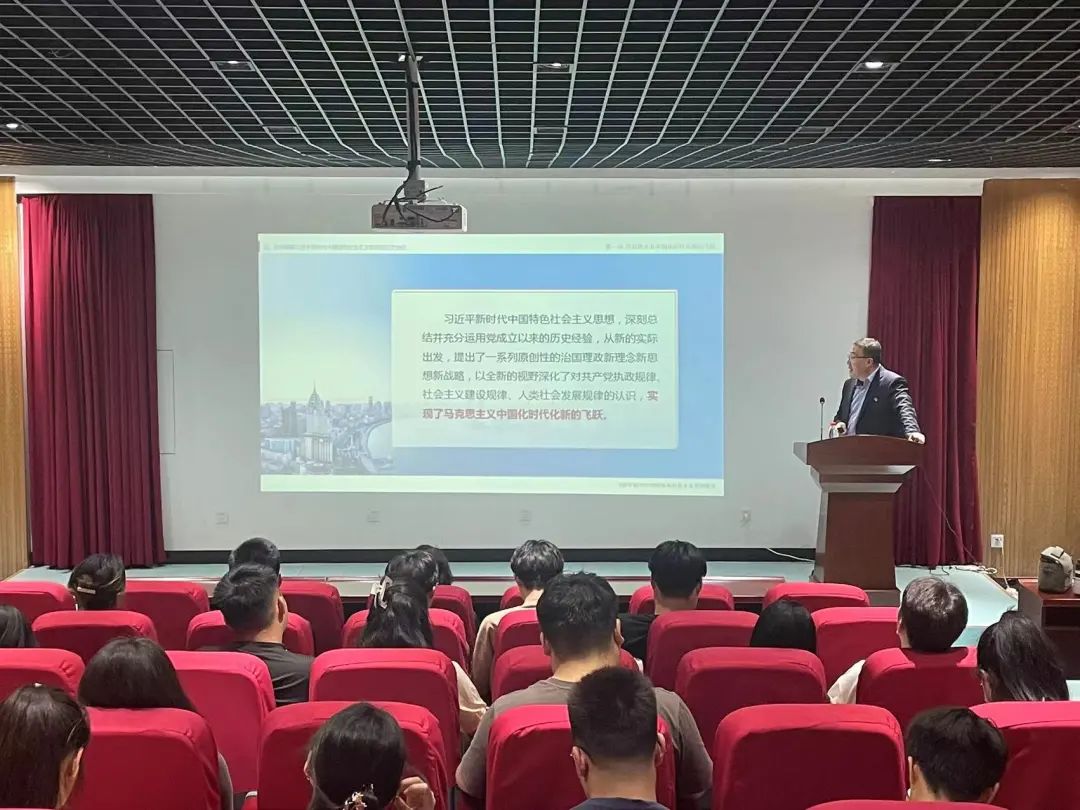 首先,韩树栋讲述了习近平新时代中国特色社会主义思想的主要内容,详细讲解了“十个明确”、“十四个坚持”和“十三个方面成就”内涵,讲述了“两个确立”的决定性意义,带领学生深刻领悟了习近平新时代中国特色社会主义思想的历史地位。他讲到,习近平新时代中国特色社会主义思想,既牢牢立足中国实际又放眼当今世界,既坚定维护中国的核心利益又推动世界的共同发展,既为中国人民谋幸福又为世界人民谋发展,既为中华民族谋复兴也为人类进步事业作贡献,既是中国人民的行动指南也是全人类共同的思想财富,具有重大的历史意义和世界意义,应该认真学习、反复学习,并以此引领和指导实践。最后,韩树栋号召大学生特别是学生干部,要勇当先锋比学习,勇挑重担比贡献,积极发扬担当精神。