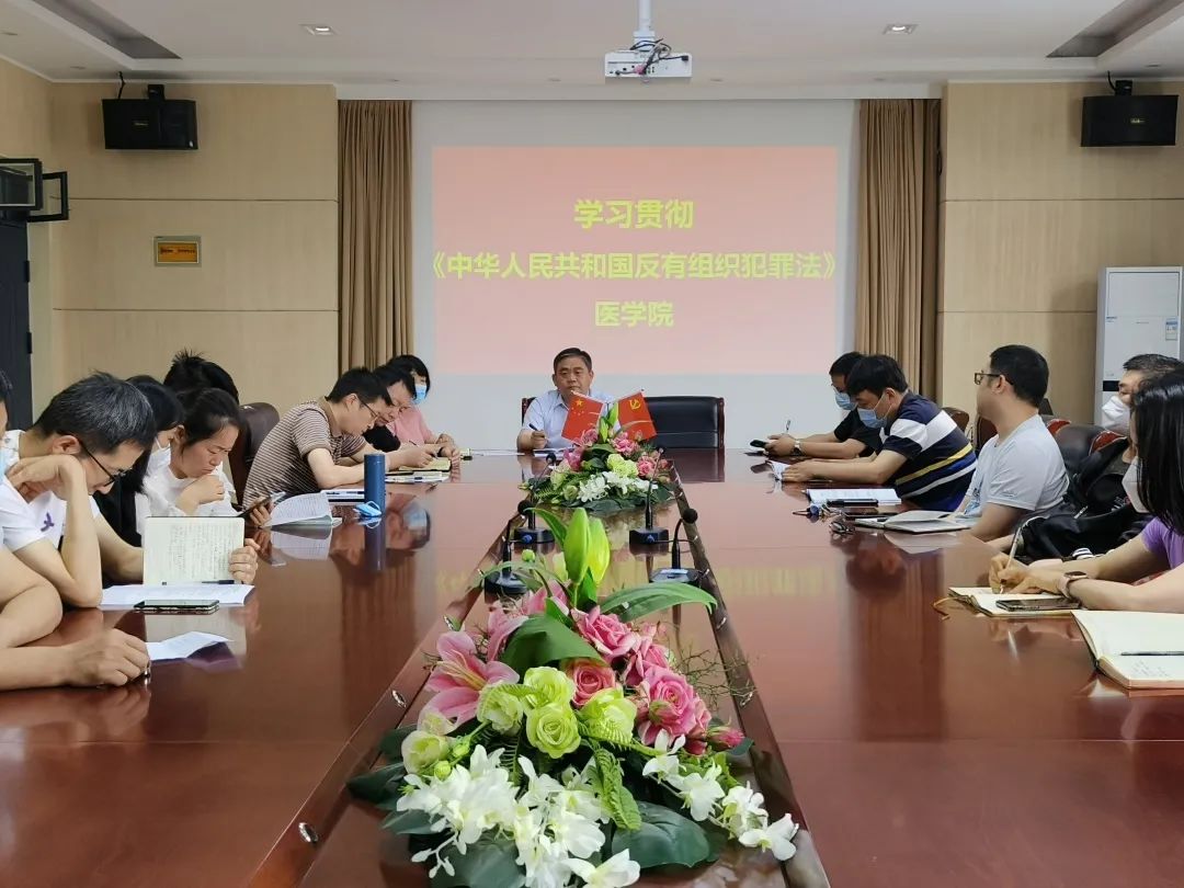 2021年12月24日,十三届全国人大常委会第三十二次会议表决通过《中华人民共和国反有组织犯罪法》,该法自2022年5月1日起施行。为进一步提高医学院师生对扫黑除恶工作的认知度和参与度,引导广大师生感受并维护法律的公平正义,5月16日,医学院学工队伍在四楼会议室召开《反有组织犯罪法》法治教育宣传专题培训会。医学院分党委书记张伟主持会议,医学院全体辅导员参会。