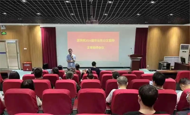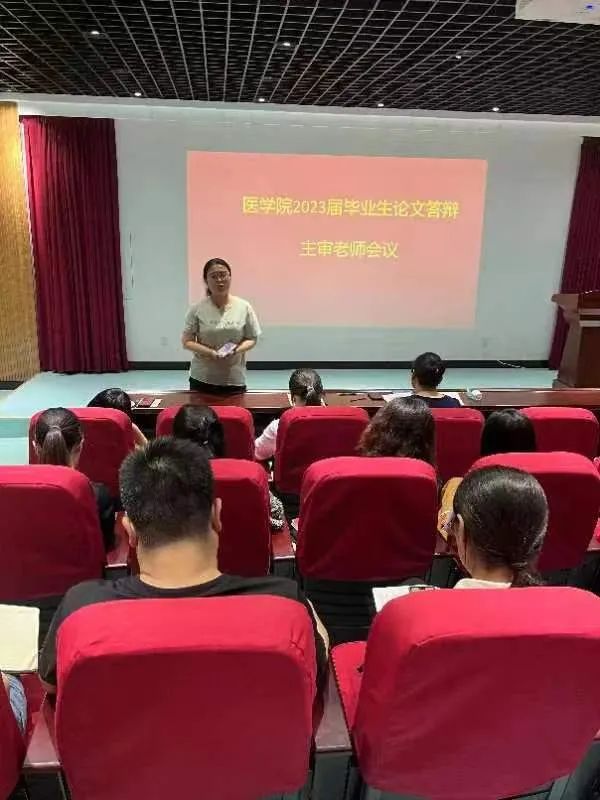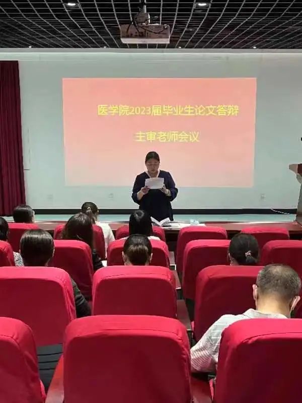 5月16日,医学院召开2023届毕业论文答辩主审老师会议。会议由医学院教务办组织,院长助理闫春生、教务办主任郝红英、药学系主任王丽、医学技术系主任张艳慧及毕业论文主审30多位老师参加会议。会议由教务办副主任裴岩岩主持。