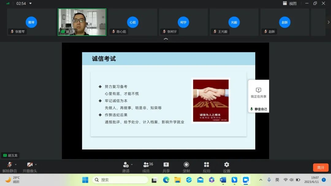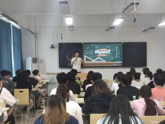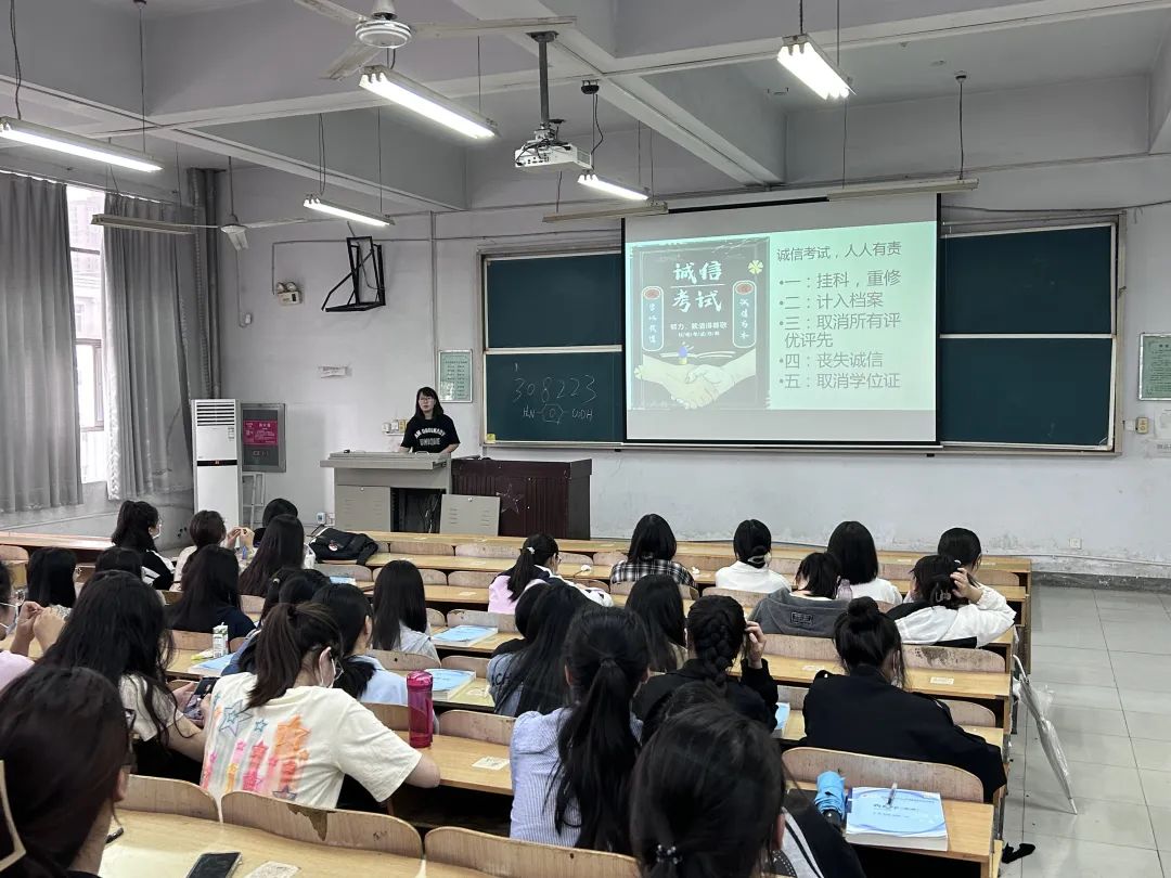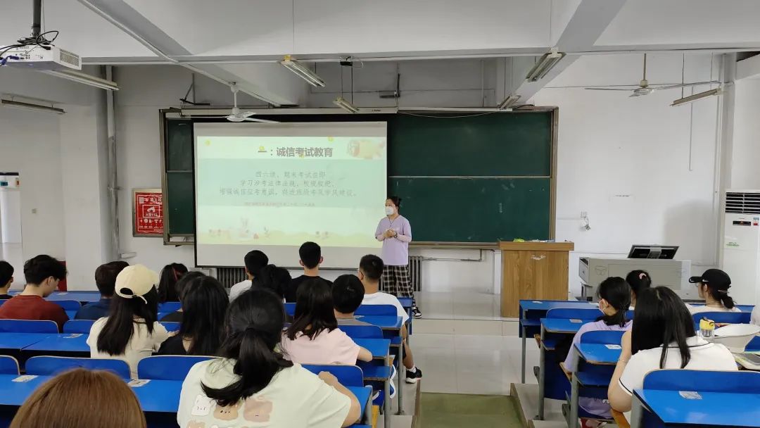 会上,辅导员周继红强调了诚信的重要性以及诚信对当代大学生的意义。接着,他带领班级同学共同学习《学生违规处分规定》,重点强调了有关学生考试作弊的认定与处理及不能授予学土学位的规定。最后,周继红就暑期安全向全体同学提出要求,要加强安全防患意识,防溺水、防传销。