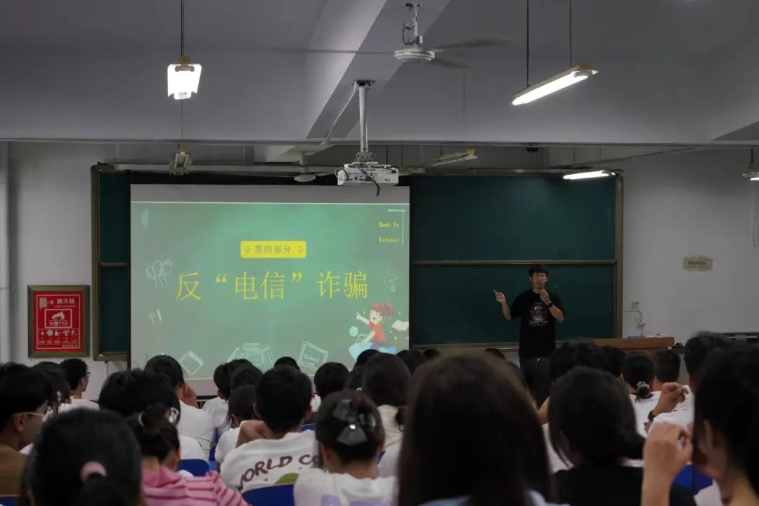 会上,郑珂馨首先介绍了什么是网络电信诈骗以及网络电信诈骗常见形式,如虚构中奖、钓鱼网站、冒充家属、网络刷单等等。接着,郑珂馨为大家讲解了识别和防范网络电信诈骗十守则以及确认被诈骗后如何补救。最后,郑珂馨要求所有新生下载国家反诈APP。