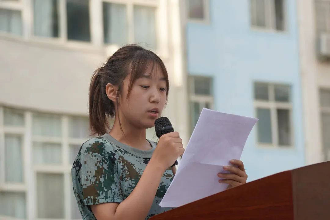 议程第三项,军训教官、新生代表分别发言。三连二排李沁璇代表全体教官发言,她表示承担本次军训任务,使命光荣、责任重大,全体教官一定会以良好的军人形象、过硬的军事本领,以身作则、精心示教,科学施训、灵活组训,高质量圆满完成各项军训工作。一连二排郭宇轩代表新生发言,她表示将用顽强的意志,敢于吃苦、勇于拼搏的精神,秉承黄科大逢一必争、逢金必夺的精神,圆满完成军训任务,并在今后学习生活中,坚定理想与信念,珍惜学习的机会,增长学识和才干,新时代的高素质大学生。