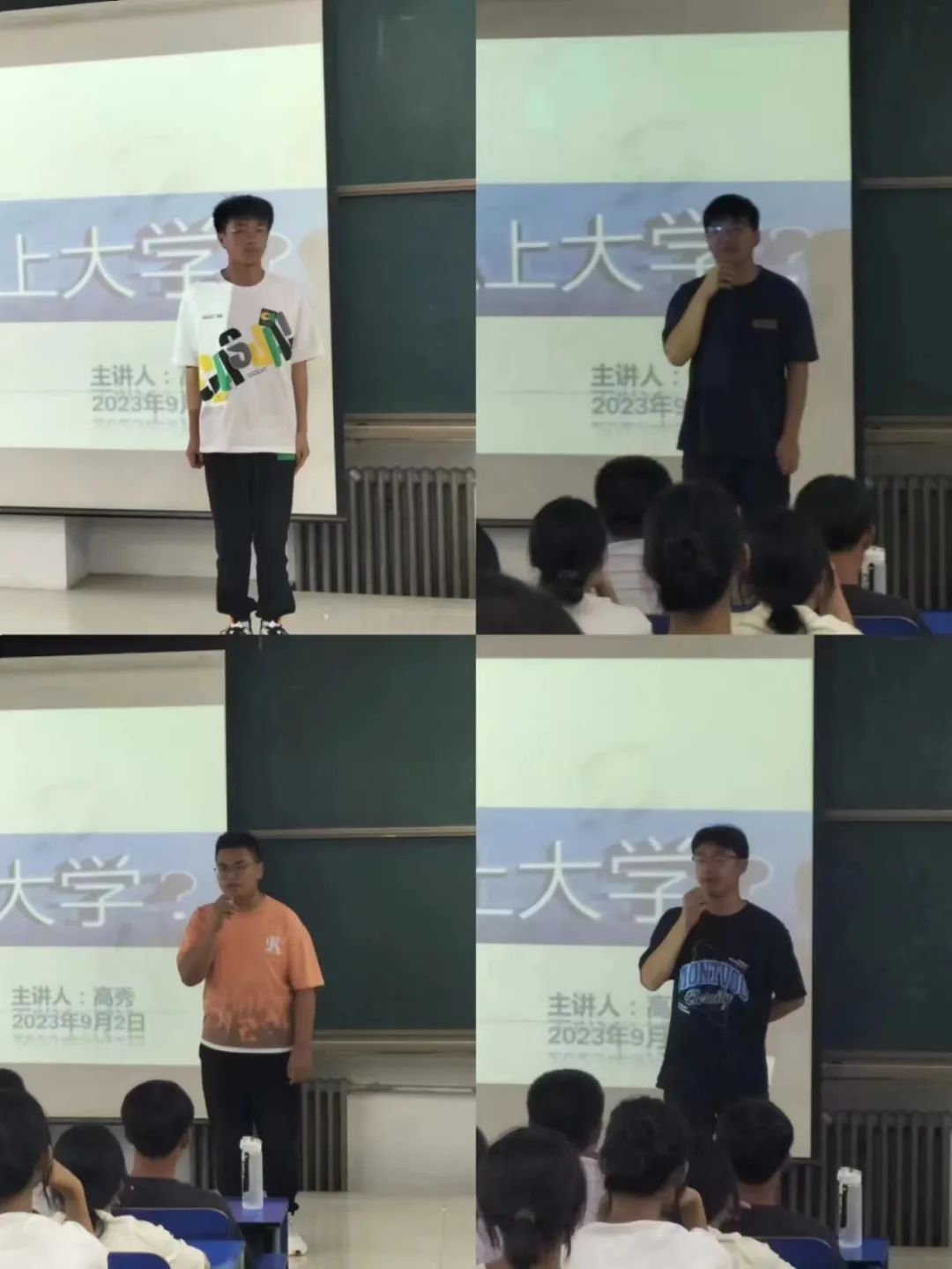 首先,高秀以“前有周恩来‘为中华之崛起而读书’,后有黄国平‘把书念下去,然后走出去,不枉活一世,最后如果还能做出点让别人生活更美好的事,那这辈就赚了’”为导语开始本次班会的讨论,班会上同学们积极发言,有的学生想要通过上大学提升自我,开拓眼界;有的同学上大学是为了实现自己“穷则独善其身,达则兼济天下”的远大抱负;有的同学想通过上大学获得自己在生活上的选择权;有的同学上大学为了诗和远方,有的同学上大学为了结交好朋友,有的同学上大学为了圆父母梦也为了圆自己的梦,有的同学上大学是为了赚钱……