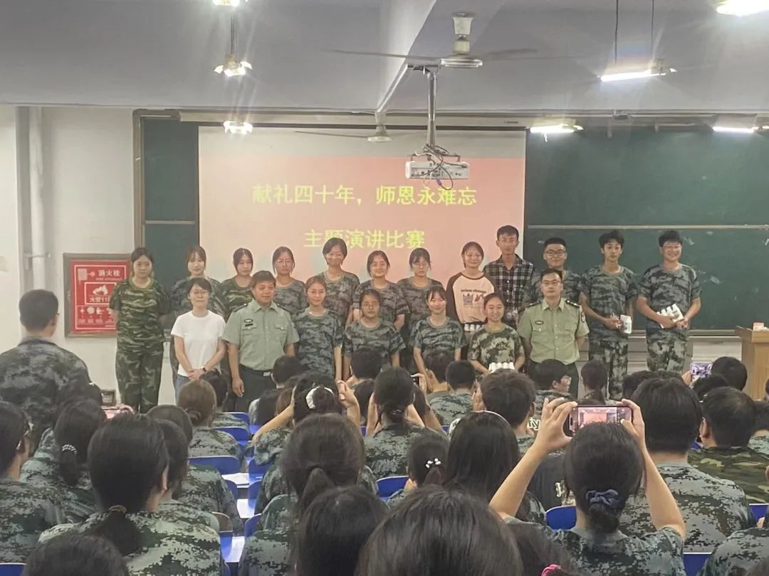 9月9日,在第39个教师节来临之际,医学系组织开展了“献礼40年,师恩永难忘”主题演讲比赛,比赛特别邀请医学院分党委副书记马香,医学系主任助理马社敏,辅导员张国润、郑珂馨及军训助教担任评委。