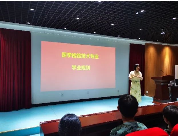 为了帮助同学们树立长远目标,明确人生的职业生涯规划,9月12日,由张艳慧主任在医学院一楼报告厅做医学检验技术专业学业规划,报告由高秀老师主持,23级医学检验技术和医学影像技术专业新生参与。