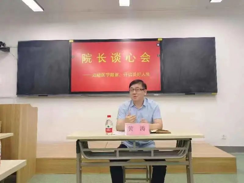 见面会上,黄涛首先从医学院的历史沿革谈起,介绍了医学院的教学理念、专业设置、师资力量和硬件设施等。接着,新生就自己关心关注的专业课程设置、未来就业及职业发展等情况积极提问,黄涛认真聆听大家的问题,并逐一进行了交流分享。最后,黄涛表示,希望同学们能树立家国情怀,筑牢专业思想,扎实掌握专业知识和技能,将来以自己所学所长服务人民,扎根基层,牢记“健康所系,性命相托”的初心和使命,积极响应党和人民对医疗工作者的号召,努力奋斗。